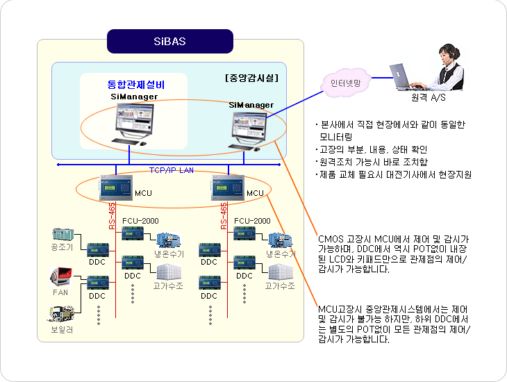 System이나 기타 자동제어와 관련한 모든 장비에서 문제 발생시 운영자와의 긴밀한 협조관계를 유지하여 문제가 발생된 내용에 대해서 정확하게 판단을 할 후, 임시로 조치가 가능한 내용에 대해서는 운영자레벨에서 조치를 취하게 하고, 본사 직원을 파견하여 신속히 조치합니다. 고정 IP가 부여되어 있을 시에는 본사 사무실에서 원격으로 접속하여 가능하므로, 좀더 정확한 진단과 조치가 가능해집니다. 또한, 기술 개발로 인한 시스템 업그레이드 시 현장 제어기의 FIRMWARE교체만으로 가능해집니다.