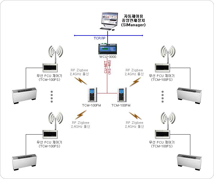 당사의 무선 FCU제어 솔루션은 무선의 장점을 활용하여 배관/배선을 최소화하며, 공사비용과 공사기간을 획기적으로 단축함은