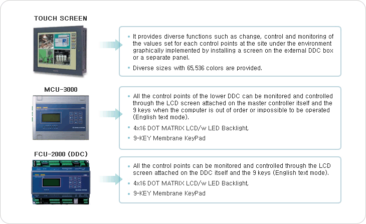 As MMI is basically an application software, there is a risk that the central monitoring panel may fail due to various viruses or wrong operations by the operator and, also in the case control should be conducted checking the actual operation situation of the equipment at the site and various tests should be conducted, the stability and convenience of Shina’s product enable the user to cope with an emergency situation or other on-site control necessity by providing a control and monitoring function at the site in accordance with the importance of the device.