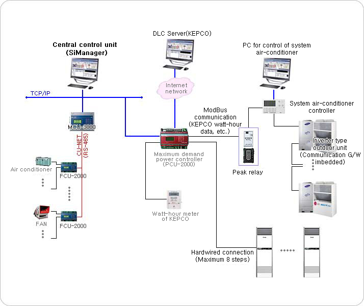 - PCU-2000 (Maximum Demand Control Unit) brings an electric charge reduction effect through energy saving by maintaining the power consumption of each consumer within the predetermined target value, and by automatically turning on/off AHUs, fans and air-conditioners based on the set power consumption.