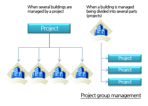 - Buildings can be grouped by a project irrespective of their locations and the objects of management can be monitored and controlled.