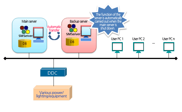 - Non-stop dualized service is possible through operation of the backup server when the main server goes defective.