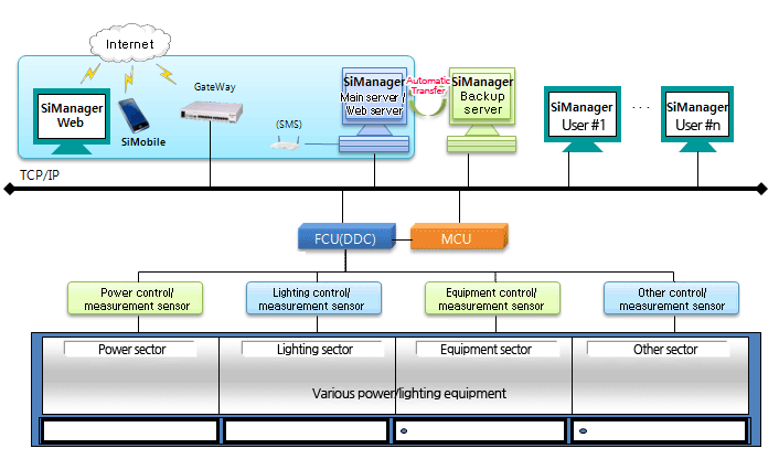 - Being equipped with diverse protocols (TCP/IP, Modbus/TCP, BACnet/IP, OPC, ODBC, DDE, RS-232C/485 based protocols), it is suitable for monitoring/control of various power, lighting, and equipment systems.