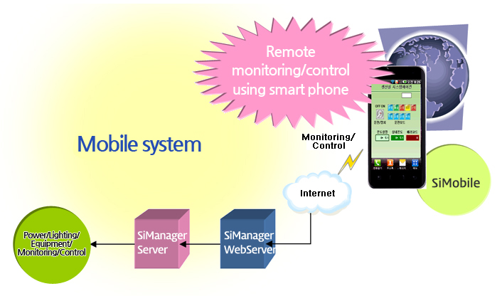 - Monitoring/control of power/lighting/equipment can be conducted irrespective of time and place using SiMobile, which operates independently from the smart phone operation system as a full Web is supported.