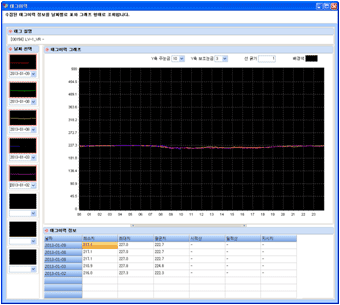 - 수집된 태그 데이터를 시간별 또는 일별로 그래프와 표형태로 조회할 수 있습니다.