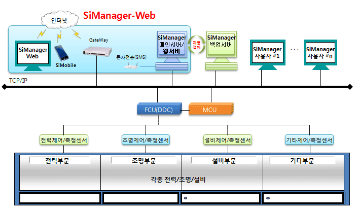 SiManager-Web은 SiManager의 메인서버에서 제공하는 제어 및 태그값을 웹서비스를 통하여 허가된 사용자에게 특화된 웹 화면으로 빌딩자동 감시제어 기능을 제공합니다.