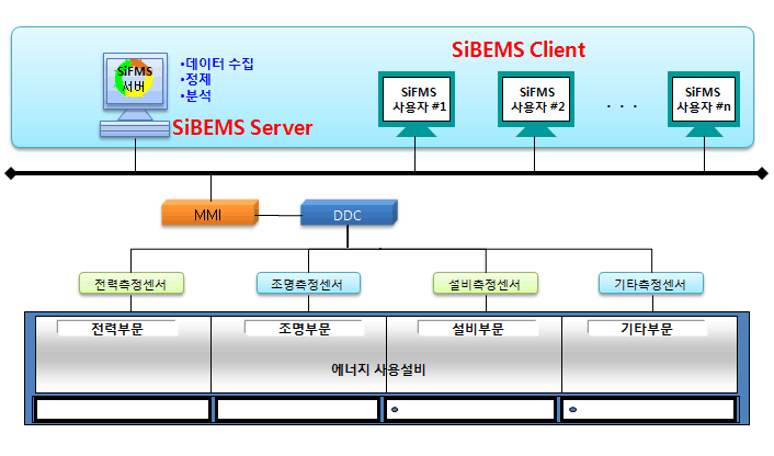 - SiBEMS는 MMI(SiManager)를 통해 수집된 데이터를 수집, 정제, 분석이 가능합니다.