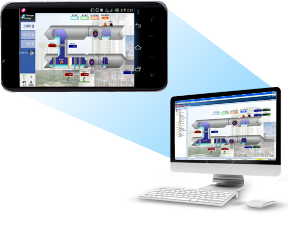 스마트폰 빌딩자동제어 HMI 앱 소프트웨어 0SiManager Mobile은 당사의 PC용 빌딩자동제어 HMI 소프트웨어인 SiManager의 주요기능을 스마트폰에서 이용할 수 있게 한 제품으로써 그래픽 감시제어, 텍스트 감시제어, 카메라 감시, 실시간 경보확인 기능을 수행할 수 있습니다
