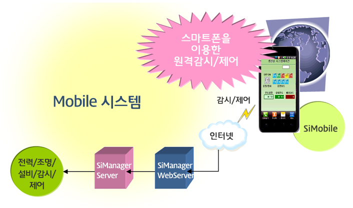 SiMobile을 이용하여 시간과 장소에 관계없이 전력/조명/설비에 대한 감시/제어가 가능하고